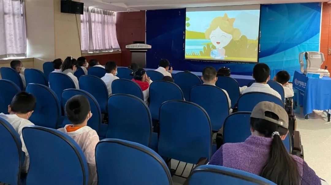下午三點半,伴隨著明媚的陽光,孩子們在帶隊老師和家長的陪同下來到醫(yī)院。孩子走進眼科醫(yī)院,大大的眼睛里滿是好奇,細細地打量著醫(yī)院的一切,時不時地還會和身邊的小朋友相互交流著。穿上眼科小醫(yī)生的衣服后,孩子們變得認真起來,一起觀看普瑞眼科原創(chuàng)近視防控微電影《星球光明守衛(wèi)戰(zhàn)》,在有趣的故事情節(jié)與豐富的護眼科普知識中開啟一段神奇的護眼之旅。